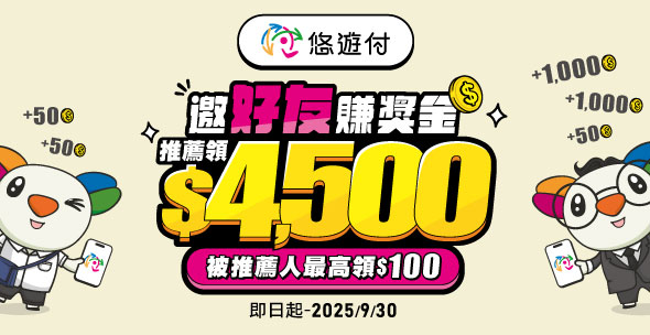 悠遊付邀好友賺獎金 推薦領4,500元
